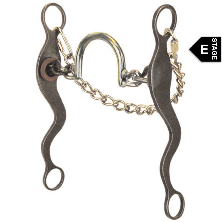 This bit has that cowboy look with blackened steel shanks. Excellent balance and the leverage needed for serious competition. This mouthpiece adds lots of tongue relief and slight palate pressure for a cue to stop and more bar pressure. This bit is for a horse that tries to run into your hand against the bit.