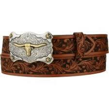 Keep in styling with the classic iconic cowboys. This Leather Floral Belt is both simple and intricate in its designs. It features two tones of leather with little floral filigree tooling and a silver-tone filigree buckle with a gold-tone steer skull emblem. Perfect for showing love for western culture, this will look adorable on your little boy.