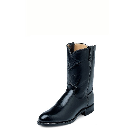 Description:An understated classic, the Jackson Roper Black 11-inch tall Men's roper boot is a simple black boot with a traditional silhouette. The quality leather exterior glistens with the sheen of luxury and its round toe and unit heel provide a relaxed fit in and out of the stirrup. The J-Flex Flexible Comfort System® insoles keep things comfortable with leather-covered cushioned insole and triple density insole board.