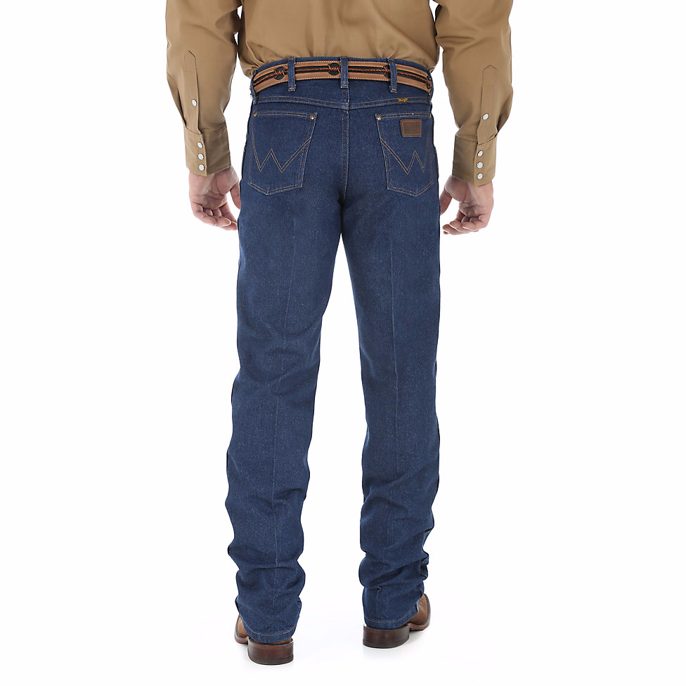 Wrangler's Premium Performance Cowboy Cut® Regular Fit jean features 20% longer lasting denim, a more comfortable waist, a functional watch pocket, regular seat and thigh, and smooth seams.