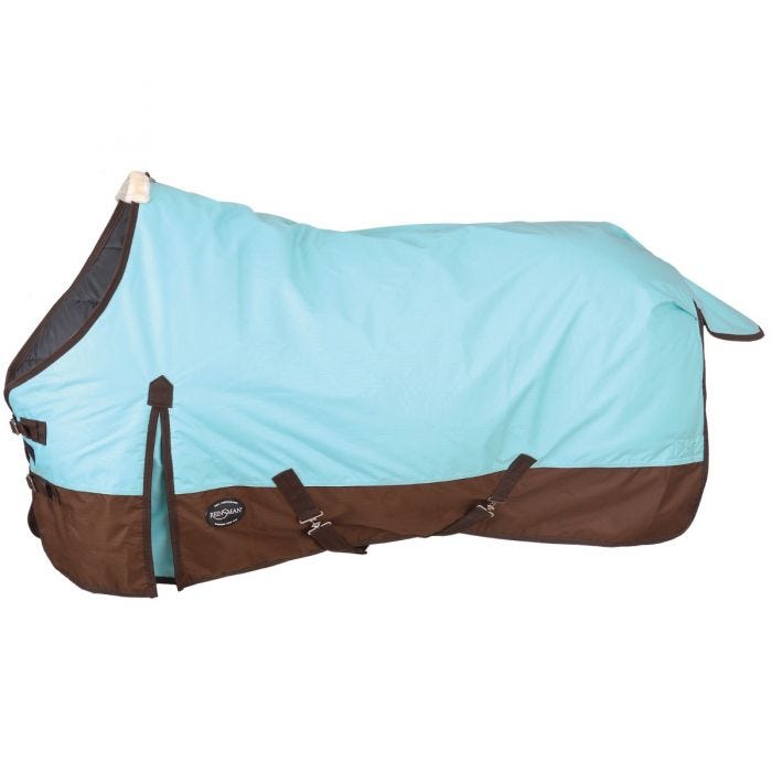 Perfect for cold winter days, this winter blanket comes in several colors and has a 600 Denier waterproof top and 200 gram fill for warmth. The neck of the blanket is lined with fleece for comfort and to help prevent rubs while wearing. Easily adjust to your horse with the 2 front buckles, standard 2 criss cross belly straps, and eslastic rear leg straps. The nylon liner is breathable to help keep your horse comfortable. Easy to clean, you can wipe the waterproof top down as needed or throw the blanket in the washer on cool and hang to dry.