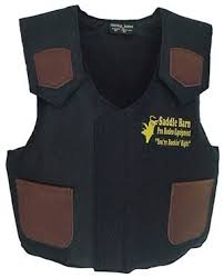 This pro rodeo protective vest has a tough Cordura® outershell and high density foam and plastic inner shell. Leather pockets and trim with Velcro® adjustments. Black with Saddle Barn® Pro Rodeo Equipment patch.