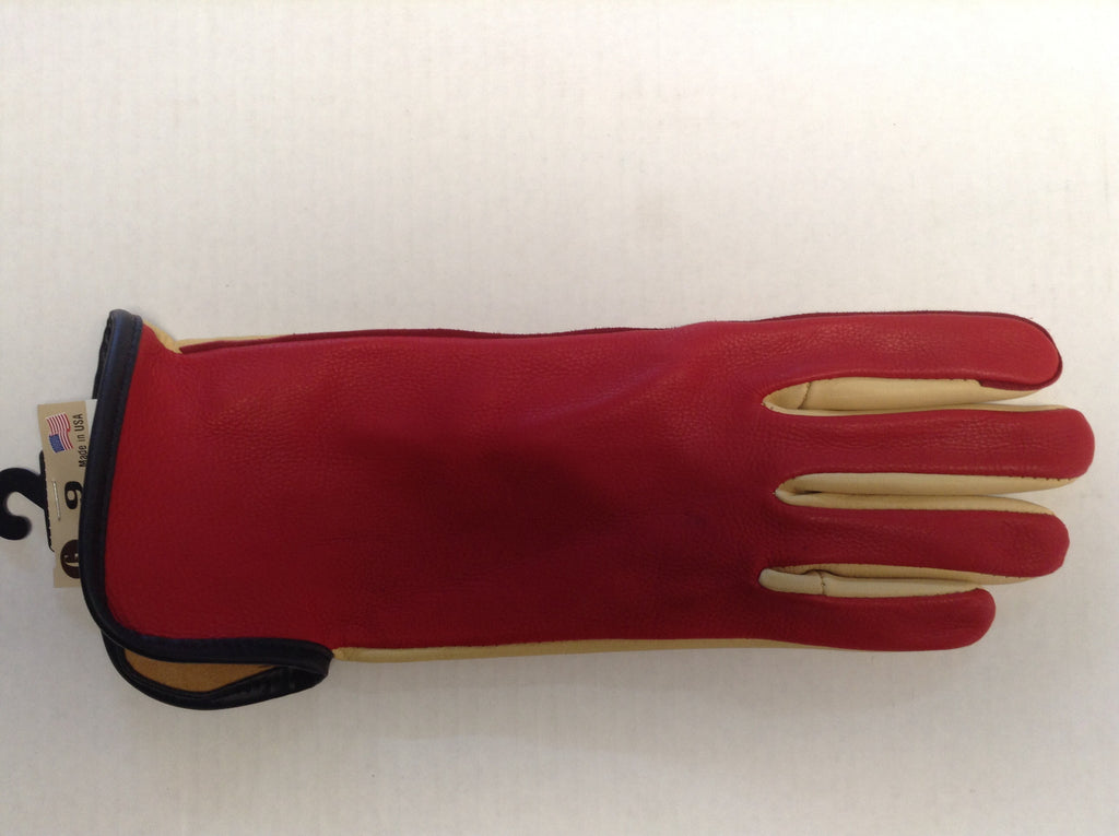 | 204BR 2T WBB Our two-tone Deerskin bull rider glove is made from tannery run light-medium weight Deerskin with black welt, black binding and Geier Glove® logo brand. Sizes 7 - 11. |